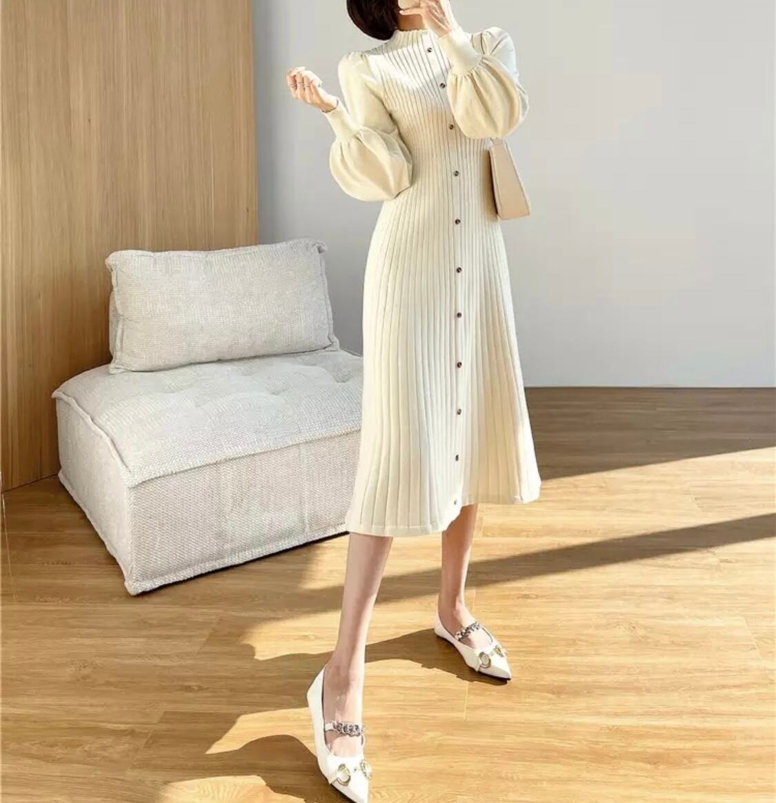 puff sleeve knit onepiece
