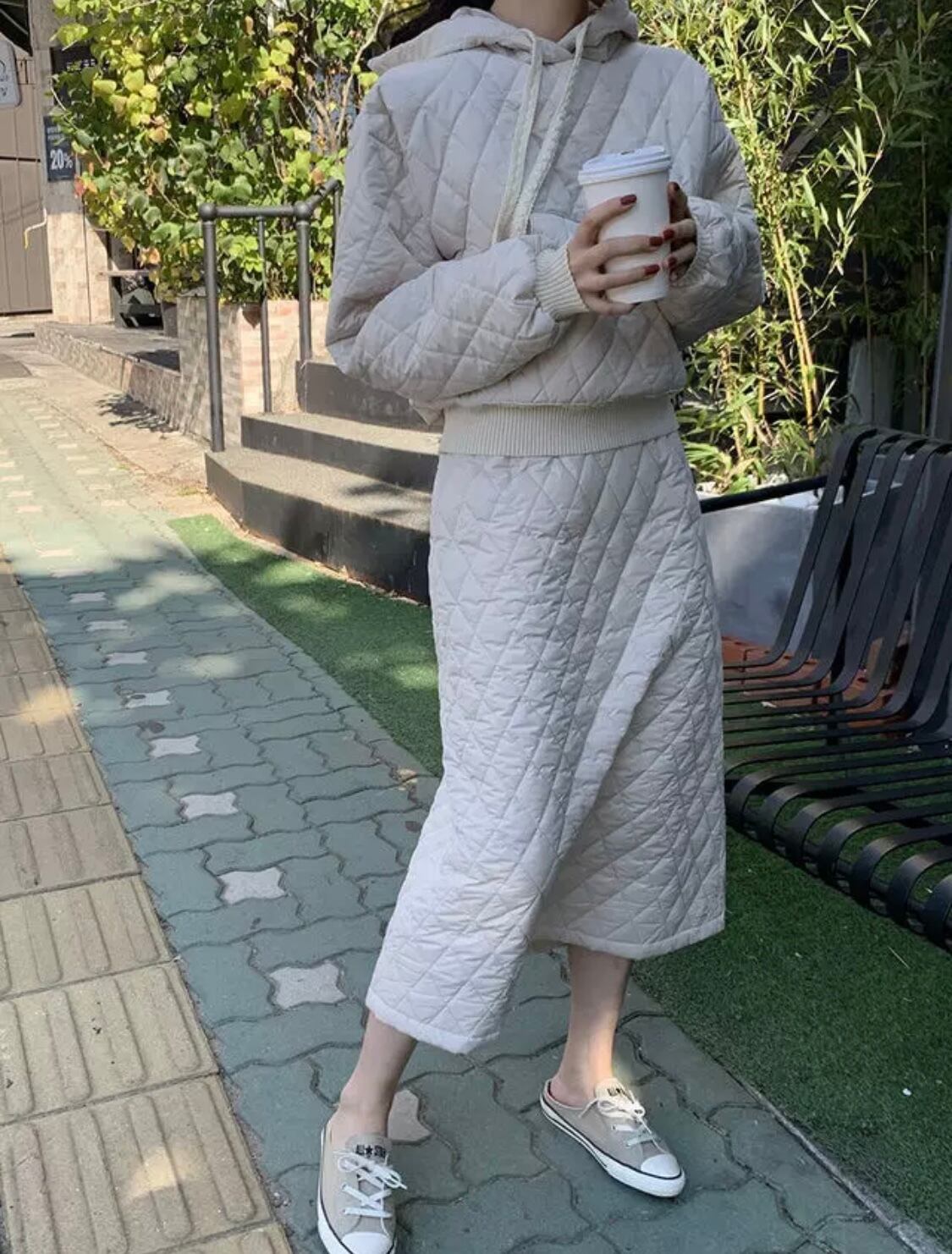 stitch parka skirt 2piece set