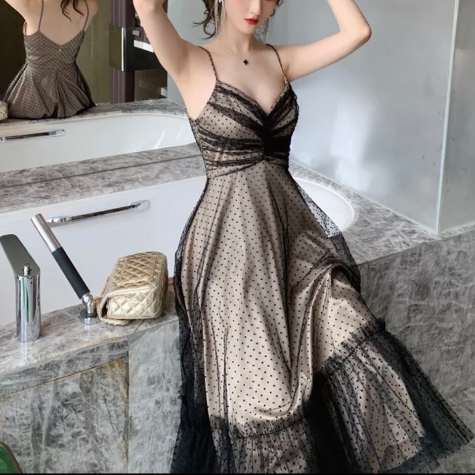 sexy suspender dot dress