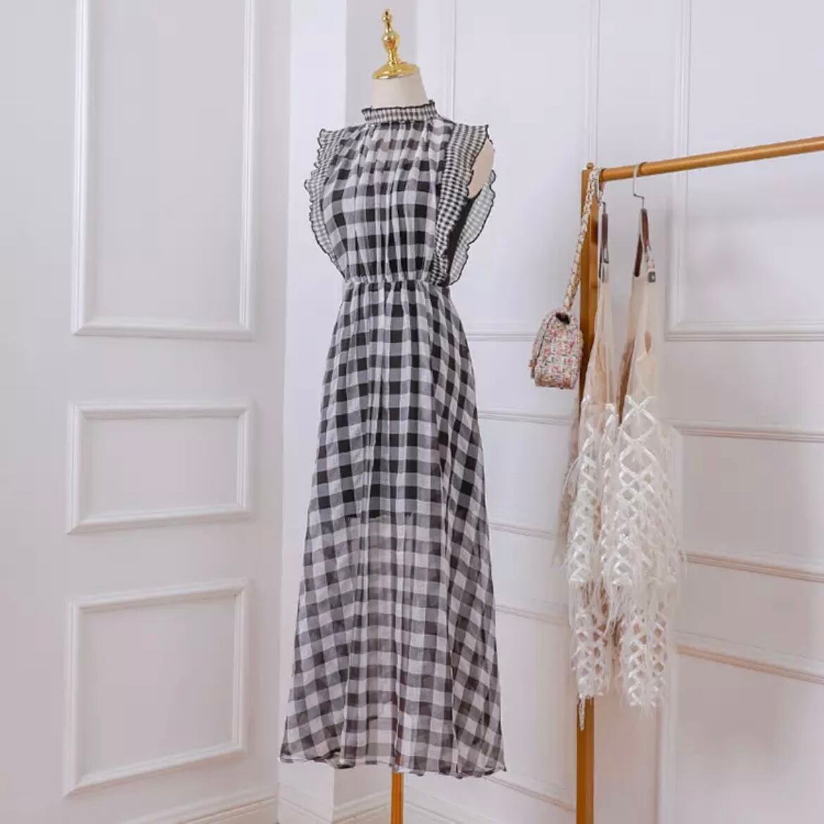 plaid chiffon onepiece