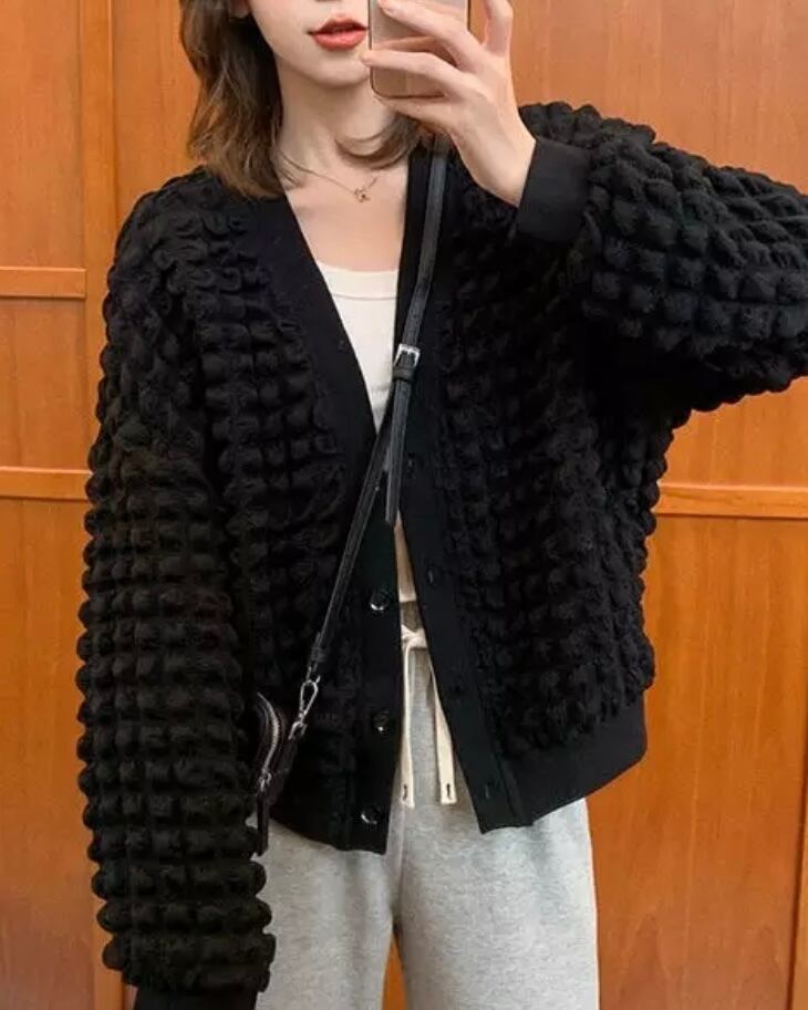 2color waffle cardigan