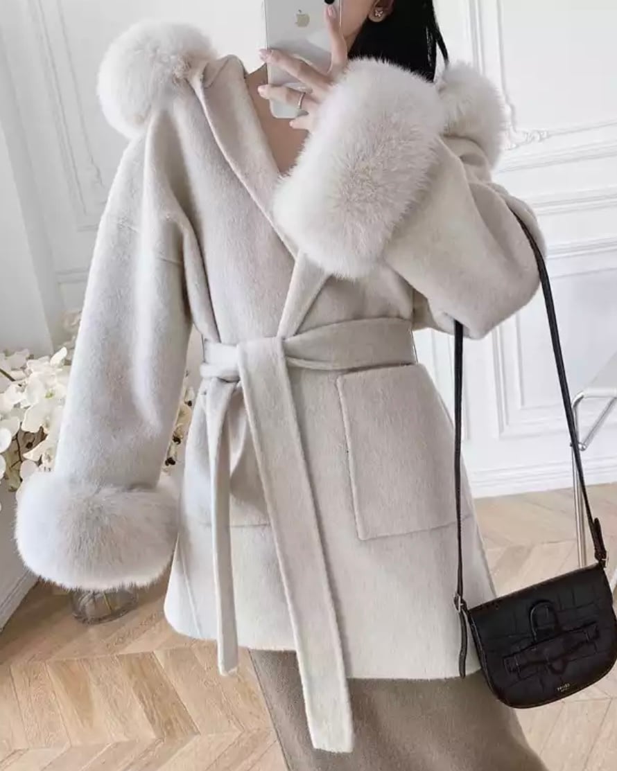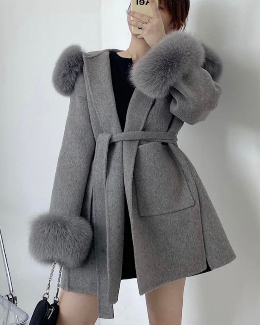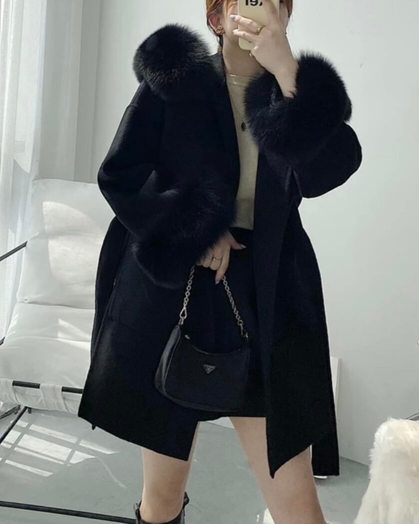 5color cashmere foxfur coat