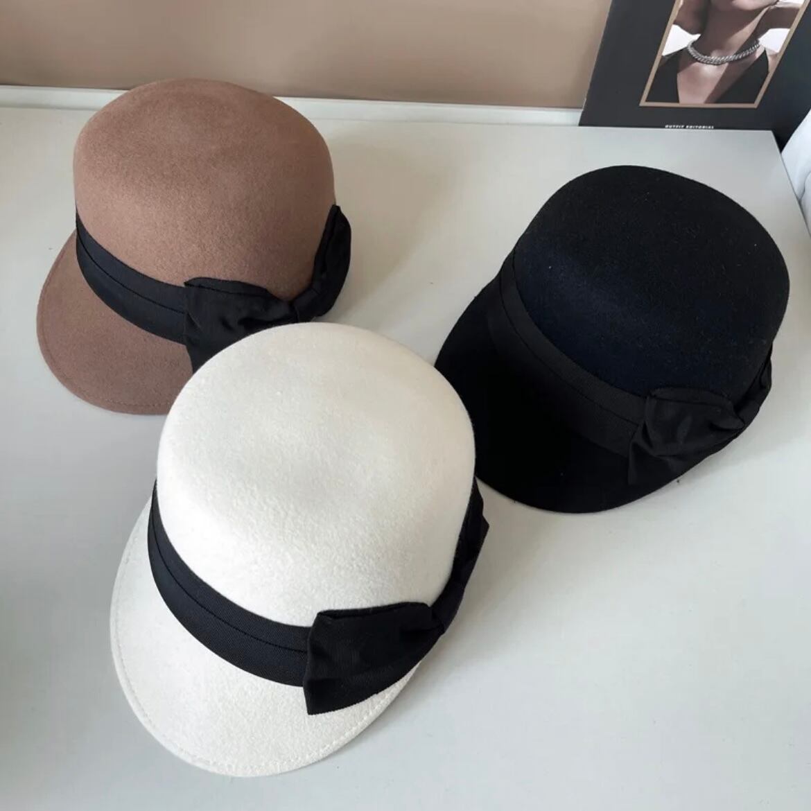 ribbon wool casquette